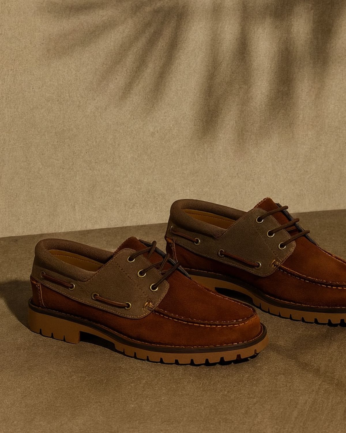 Crafted in two rich tones of brown, this leather boat shoe blends classic design with subtle contrast. Built for everyday wear, from city streets to weekend escapes.