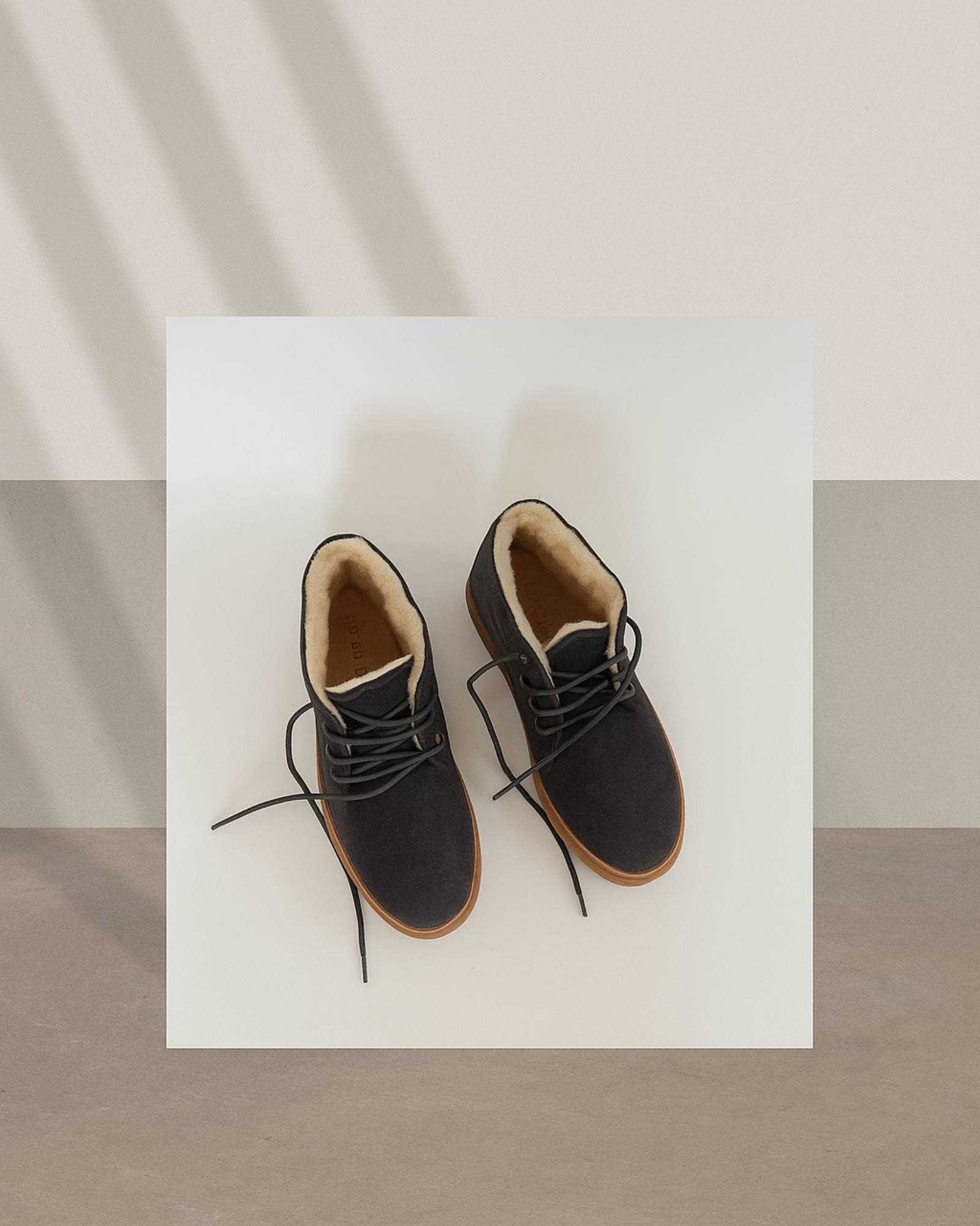 Crafted with soft suede and a warm shearling lining, this mid–cut sneaker brings comfort to colder days. A modern, easy-to-wear design made for everyday winter living—from relaxed mornings to long city walks.
